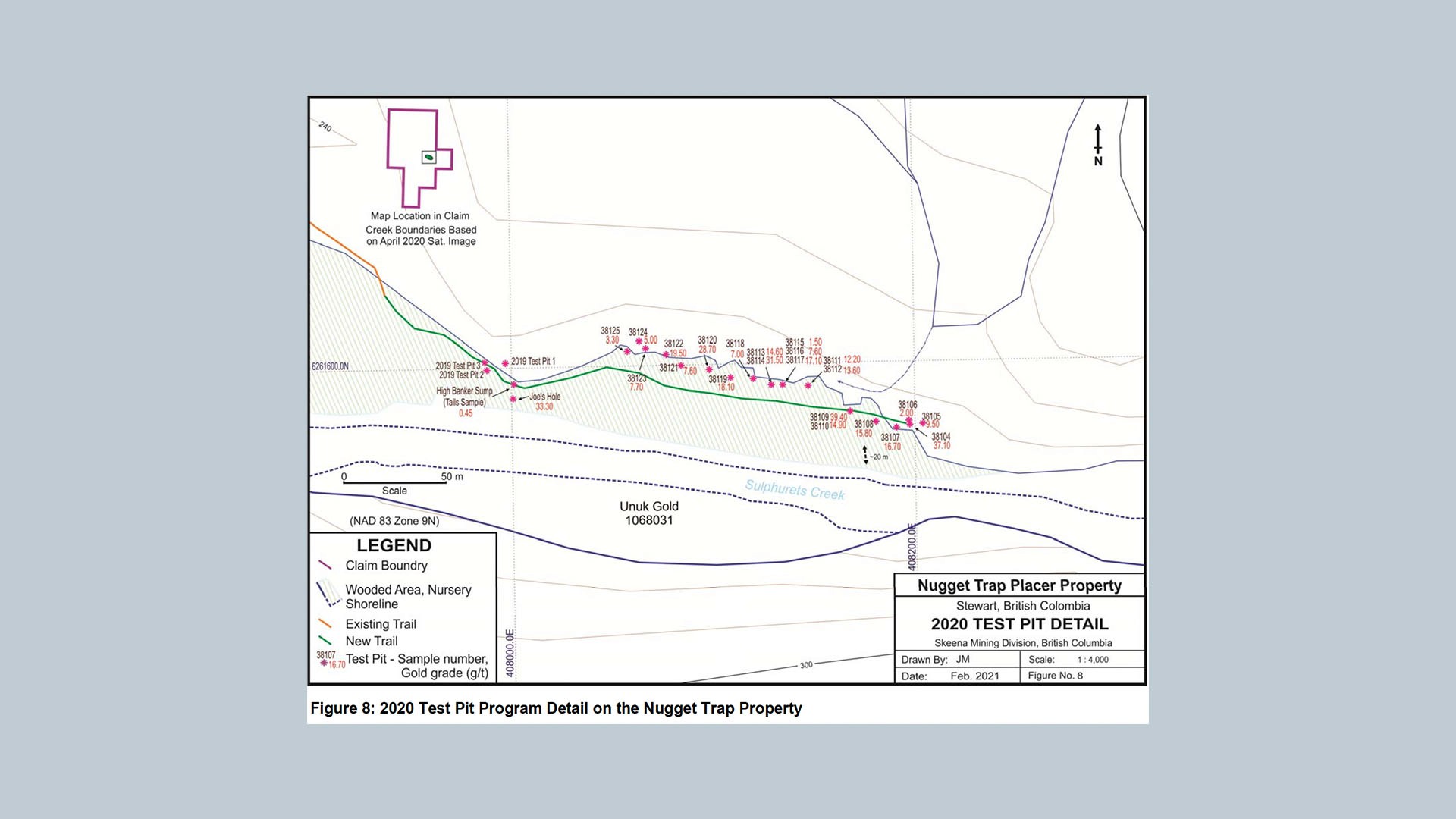 Proven placer gold system: Test pit sampling confirmed widespread fine-grained gold within alluvial sediments along Sulphurets Creek. Located in Tier-1 gold district: Positioned in BC’s Golden Triangle near major gold-copper deposits including Mitchell and Kerr systems. Expansion potential identified: Geomorphology mapping highlights additional channels and zones for future placer development. Scalable exploration upside: 25 test pits delivered encouraging results, supporting further drilling, LiDAR mapping, and resource expansion.